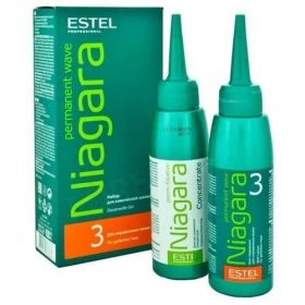 Набор для химической завивки Niagara для нормальных волос от российской компании Estel предназначен для создания естественных локонов — мягких, блестящих, динамичных. Формулы продуктов обеспечивают бережное воздействие за счёт цистеамина и провитамина B5. NIAGARA идеально подойдет тем, кто любит менять образ: подвижные эластичные локоны можно подвергать любой укладке. Дополнительная возможность NIAGARA: создание прикорневого объёма. В набор NIAGARA № 3 входят: Био-перманент 100 мл Фиксаж-перманент 100 мл Способ применения: 1. Вымойте волосы шампунем "Интенсивное очищение"; 2. Накрутите волосы на бигуди (волосы должны оставаться влажными на протяжении всей процедуры химической завивки); 3. Хрошо пропитайте волосы, нанося био-перманент вдоль бигуди, затем поперек. Такое распределение био-перманента повторите 2-3 раза. Время выдержки не более 25 минут; 4. По истечении времени воздействия, не снимая бигуди, промойте волосы большим количеством теплой воды. Излишки влаги промокните полотенцем; 5. Перед нанесением фиксажа разбавьте его водой в пропорции 1:1. Хорошо вспеньте его при помощи губки. Нанесите часть фиксажа на волосы, накрученные на бигуди. Время воздействия 7-10 минут. По истечении времени воздействия бережно раскрутите бигуди; 6. Вторую часть разведенного фиксажа нанесите на волосы без бигуди. Время воздействия 5-7 минут; 7. Тщательно промойте волосы водой с применением шампуня; 8. Нанесите на волосы бальзам, выдержите 2 минуты, смойте. Промокните волосы полотенцем; 9. Высушите волосы естественным путем, формируя локоны руками, избегая натяжения волос. Состав: Био-перманент: Aqua, Cysteamine HCI, Propylene Glycol, Polysorbate 20, Ammonium Hydroxide, Cocamidopropyl Betaine, Panthenol, Parfum, Butylphenyl Methylpropional, Hydroxyisohexyl 3-Cyclohexene Carboxaldehyde, alpha-Isomethyl lonone, Linalool, Geraniol, Hydroxycitronellal, Polyquaternium-28, Phenoxyethanol, Diazolidinyl Urea, Methylparaben, Ethylparaben, Propylparaben, Hydroxyethylcellulose. Фиксаж: Aqua, Hydrogen Peroxide, Sodium Laureth Sulfate, Xanthan Gum, Sodium Benzoate, Phosphoric Acid, Tetrasodium EDTA.