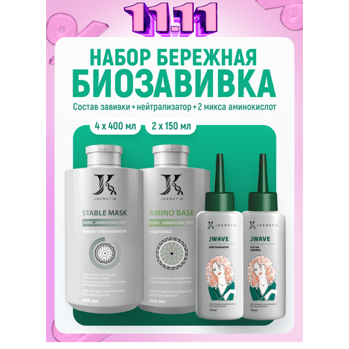 НАЙТИ ВЫГОДНЕЕ - Набор составов для Бережной Биозавивки JKeratin: Amino Base + Stable Mask + JWave