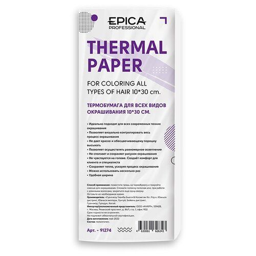 НАЙТИ ВЫГОДНЕЕ - EPICA Professional Термобумага для всех видов окрашивания, 10*30 см, 50 шт