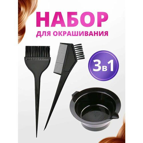 Набор для окрашивания волос включает в себя самые необходимые аксессуары - широкую кисть, узкую кисть с расческой и миску ванночку для смешивания краски. Кисти для окрашивания подойдут для покраски волос, мелирования, колорирования, нанесения ухода для волос, средства для выпрямления волос, ламинирования. Классическая кисть для окрашивания с черной прямой щетиной предназначена для качественной профессиональной покраски волос - подойдет для окрашивания корней волос. Узкая кисть для окрашивания мелких участков и длины. Для более равномерного нанесения на узкой кисти имеется расческа - для прочесывания длины волос с составом. Данный парикмахерский набор предназначен для использования в домашних условиях и в салоне.