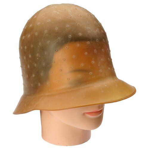 Шапочка каучуковая для мелирования. Покрой этой модели даёт плотное прилегание шапочки к голове в височной и затылочной зонах, что обычно невозможно при работе с шапочками из других материалов. Шапочка разделена на зоны и имеет мелкую сетку из крестовых отверстий для равномерного вытаскивания прядей. Структура шапочки не позволяет составу просачиваться сквозь дырочки.