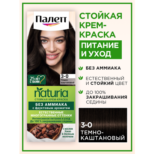 НАЙТИ ВЫГОДНЕЕ - ПАЛЕТТ Naturia Стойкая крем-краска 3-0 Темно-каштановый,