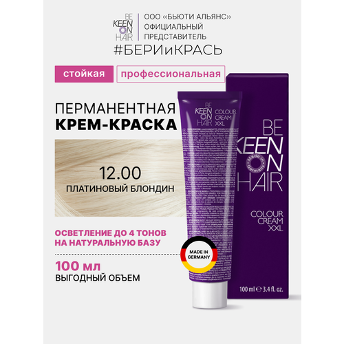 НАЙТИ ВЫГОДНЕЕ - KEEN Be Keen on Hair крем-краска для волос XXL Colour Cream, 12.00 platinblond, 100 мл