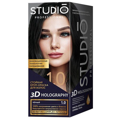 Стойкая крем-краска волос Studio Professional "3D Holography", тон 1.0 чёрный, 115 мл (комплект из 7 шт)