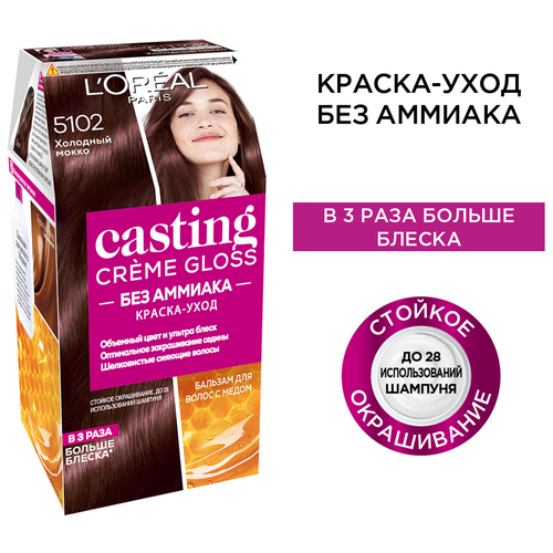 НАЙТИ ВЫГОДНЕЕ - L'Oreal Paris Casting Creme Gloss стойкая краска-уход для волос, 5102 Холодный мокко, 180 мл