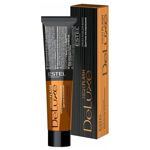 Крем-краска Estel Deluxe High Flash Цветное мелирование окрашивает в интенсивные яркие оттенки без предварительного осветления. Окрашивает натуральную базу с 3-го уровня, окрашенную базу с 4-го уровня. Выбор оксигента определяет интенсивность оттенка. На очень темных волосах возможно использование оксигента De Luxe 12% (без применения фольги). Взаимодействует начиная с натуральной 3 УГТ и окрашенной 4 УГТ-базой.