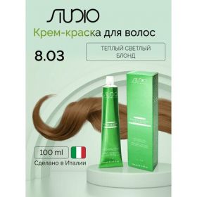 НАЙТИ ВЫГОДНЕЕ - Kapous Studio Professional Крем-краска для волос с экстрактом женьшеня и рисовыми протеинами, 8.03 теплый светлый блонд, 100 мл