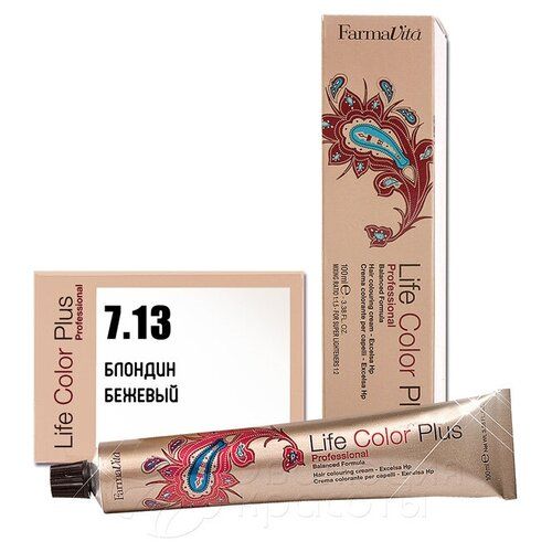 НАЙТИ ВЫГОДНЕЕ - FarmaVita Life Color Plus Крем-краска для волос, 7.13 бежевый блондин, 100 мл