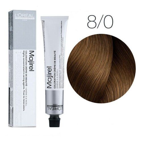 НАЙТИ ВЫГОДНЕЕ - L'Oreal Professionnel Majirel стойкая крем-краска для волос, 8.0 светлый блондин глубокий, 50 мл