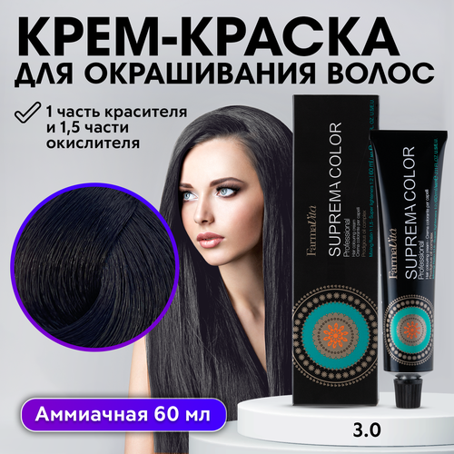НАЙТИ ВЫГОДНЕЕ - FARMAVITA / Краска для волос профессиональная перманентная 3.0 брюнет SUPREMA COLOR 60 мл, идентичен Life Color Plus