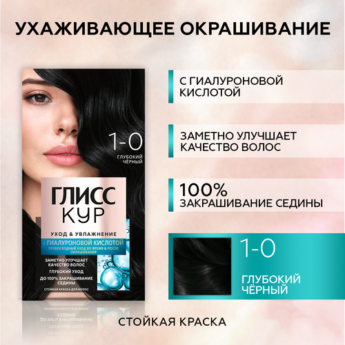 НАЙТИ ВЫГОДНЕЕ - Глисс Кур Стойкая краска для волос Уход & Увлажнение, 1-0 Глубокий чёрный, 135 мл