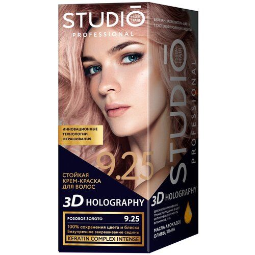 Стойкая крем-краска для волос Studio Professional 3D Holography, тон 9.25 розовое золото (комплект из 12 шт)