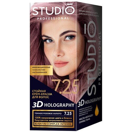 Стойкая крем-краска волос Studio Professional "3D HOLOGRAPHY", тон 7.25 тёмное розовое золото, 115 мл