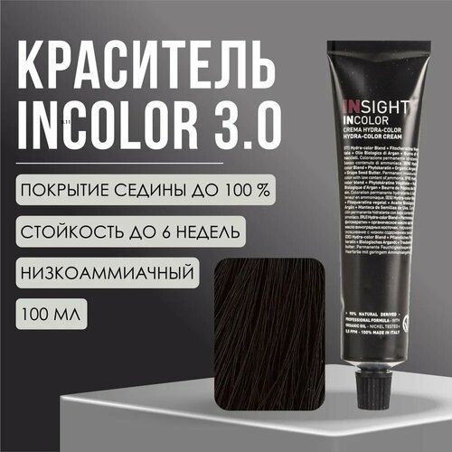 НАЙТИ ВЫГОДНЕЕ - Insight Incolor крем-краска, 3/0 темный коричневый натуральный, 100 мл