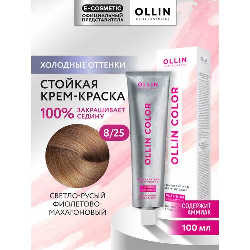 НАЙТИ ВЫГОДНЕЕ - OLLIN Professional Color Platinum Collection перманентная крем-краска для волос, 8/25 светло-русый фиолетово-махагоновый