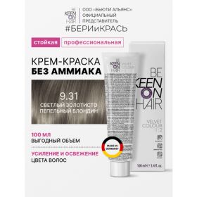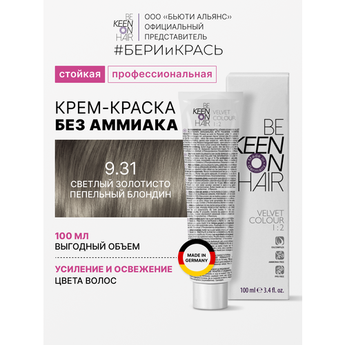 НАЙТИ ВЫГОДНЕЕ - KEEN Be Keen on Hair краска для волос без аммиака Velvet Color, 9.31 hellblond gold asch, 100 мл