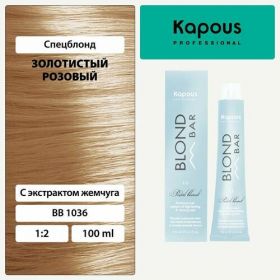НАЙТИ ВЫГОДНЕЕ - Kapous Blond Bar крем-краска для волос с экстрактом жемчуга, BB 1036 Золотистый розовый, 100 мл