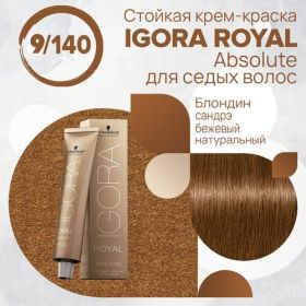НАЙТИ ВЫГОДНЕЕ - Schwarzkopf Professional Royal крем-краска Absolutes, 9-140 блондин сандрэ бежевый натуральный, 60 мл