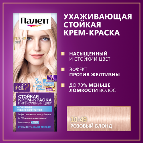 НАЙТИ ВЫГОДНЕЕ - Палетт Стойкая крем-краска для волос Интенсивный цвет 10-49 Розовый блонд, 110 мл
