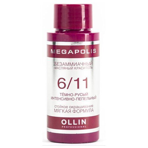 НАЙТИ ВЫГОДНЕЕ - OLLIN Professional Megapolis безаммиачный масляный краситель, 6/11 темно-русый интенсивно-пепельный, 50 мл