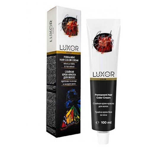 LUXOR PROFESSIONAL COLOR - профессиональная перманентная крем-краска для волос с протеинами пшеницы, пчелиным молочком и экстрактом риса. Формула красителя включает в состав инновационный ухаживающий комплекс, который обеспечивает максимальное увлажнение, сохранение и восстановление структуры волос при окрашивании. Протеины пшеницы и пчелиное молочко реконструируют поврежденную кутикулу волос, выравнивая их по всей длине. Экстракт риса обладает антиоксидантными свойствами, что позволяет замедлить процессы фотостарения волос, улучшает их эластичность и прочность. Индивидуальный коктейль микропигментов обеспечивает равномерное проникновение в структуру волос, что позволяет достичь идеального покрытия, стойкости цвета, шелковистости и бриллиантового блеска после окрашивания.