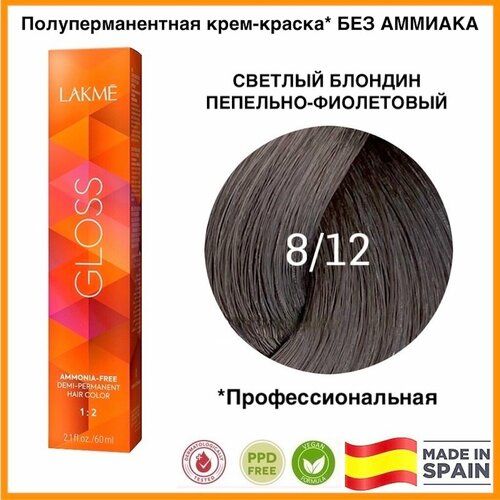 НАЙТИ ВЫГОДНЕЕ - Lakme тонирующая крем-краска Gloss Color Rinse, 8/12 светло-белокурый пепельно-металлический, 60 мл
