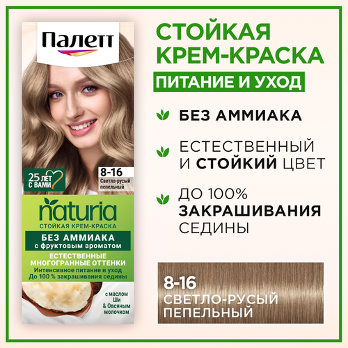 НАЙТИ ВЫГОДНЕЕ - Палетт Naturia Стойкая крем-краска для волос 8-16 Светло-русый пепельный, 110 мл