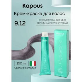 НАЙТИ ВЫГОДНЕЕ - Kapous Hyaluronic Acid Крем-краска для волос с гиалуроновой кислотой, 9.12 Очень светлый блондин пепельный перламутровый, 100 мл