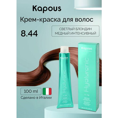 НАЙТИ ВЫГОДНЕЕ - Kapous Hyaluronic Acid Крем-краска для волос с гиалуроновой кислотой, 8.44 светлый блондин медный интенсивный, 100 мл