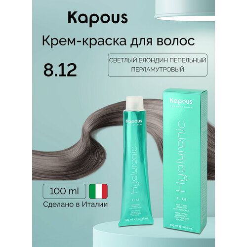 НАЙТИ ВЫГОДНЕЕ - Kapous Hyaluronic Acid Крем-краска для волос с гиалуроновой кислотой, 8.12 светлый блондин пепельный перламутровый, 100 мл