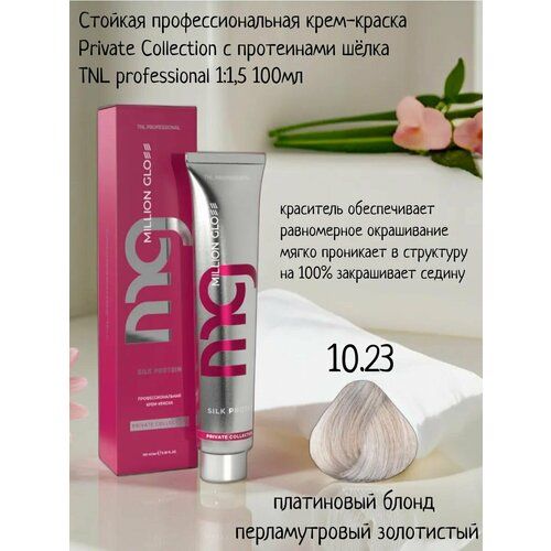 НАЙТИ ВЫГОДНЕЕ - TNL Professional Крем-краска для волос Million glow Silk protein, 10.23 платиновый блонд перламутровый золотистый, 100 мл