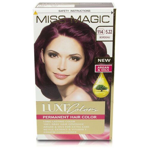 НАЙТИ ВЫГОДНЕЕ - Miss Magic Luxe Colors Стойкая краска для волос c экстрактом крапивы, витамином F и кератином, 114 (5.22) бордо, 125 мл