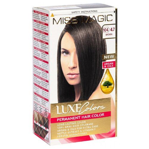 НАЙТИ ВЫГОДНЕЕ - Miss Magic Luxe Colors Стойкая краска для волос c экстрактом крапивы, витамином F и кератином, 104(4.7) шоколад, 108 мл