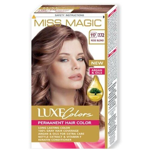 НАЙТИ ВЫГОДНЕЕ - Miss Magic Luxe Colors Стойкая краска для волос c экстрактом крапивы, витамином F и кератином, 117 (7.72) розово-русый, 108 мл