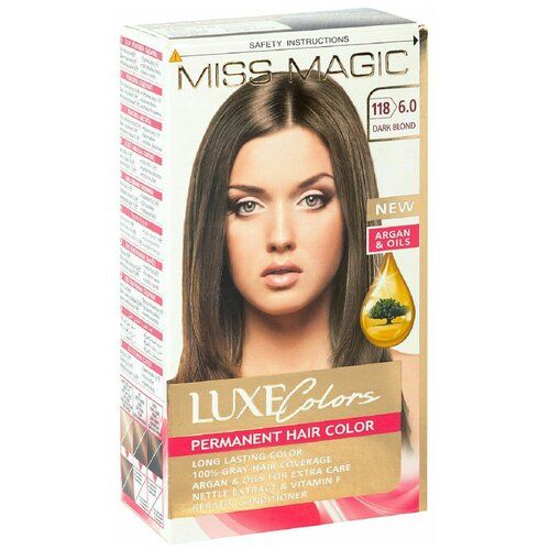 НАЙТИ ВЫГОДНЕЕ - Miss Magic Luxe Colors Стойкая краска для волос c экстрактом крапивы, витамином F и кератином, 118 (6.0) темно-русый, 125 мл
