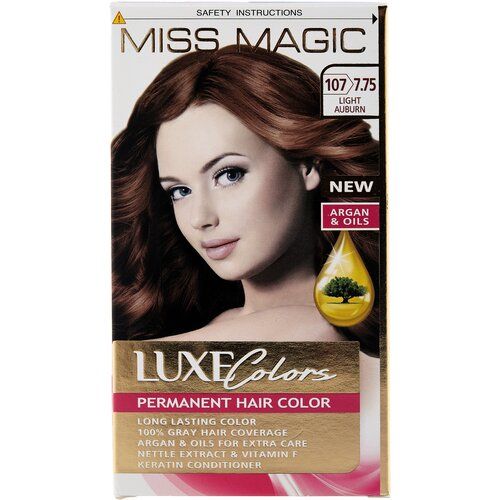 НАЙТИ ВЫГОДНЕЕ - Miss Magic Luxe Colors Стойкая краска для волос c экстрактом крапивы, витамином F и кератином, 107 (7.75) светло-каштановый, 108 мл