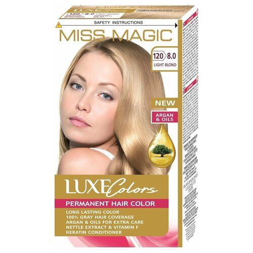 НАЙТИ ВЫГОДНЕЕ - Miss Magic Luxe Colors Стойкая краска для волос c экстрактом крапивы, витамином F и кератином, 120 (8.0) песочный, 108 мл