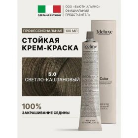 НАЙТИ ВЫГОДНЕЕ - 3Deluxe крем-краска для волос 3D Lux Tech, 5.0 светло-каштановый, 100 мл