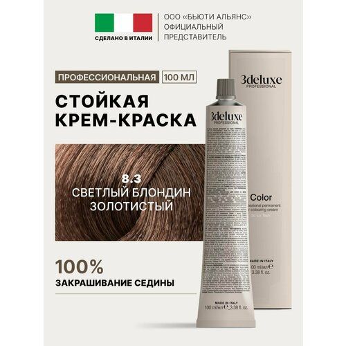 НАЙТИ ВЫГОДНЕЕ - 3Deluxe крем-краска для волос 3D Lux Tech, 8.3 светлый блондин золотистый, 100 мл