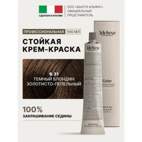 НАЙТИ ВЫГОДНЕЕ - 3Deluxe крем-краска для волос 3D Lux Tech, 6.31 темный блондин золотисто-пепельный, 100 мл
