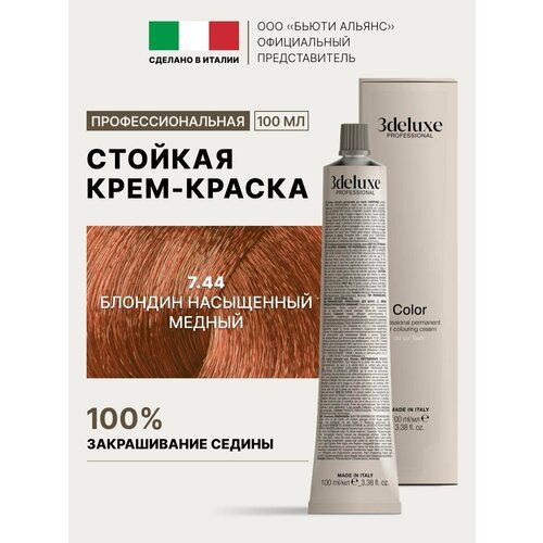 НАЙТИ ВЫГОДНЕЕ - 3Deluxe крем-краска для волос 3D Lux Tech, 7.44 блондин насыщенный медный, 100 мл