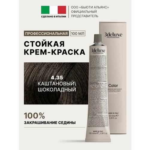 НАЙТИ ВЫГОДНЕЕ - 3Deluxe крем-краска для волос 3D Lux Tech, 4.35 каштановый шоколадный, 100 мл