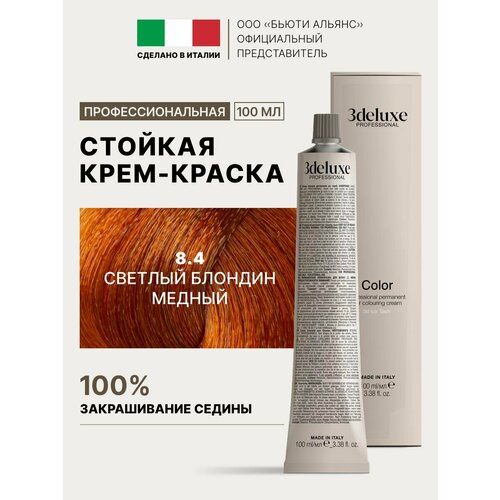 НАЙТИ ВЫГОДНЕЕ - 3Deluxe крем-краска для волос 3D Lux Tech, 8.4 светлый блондин медный, 100 мл
