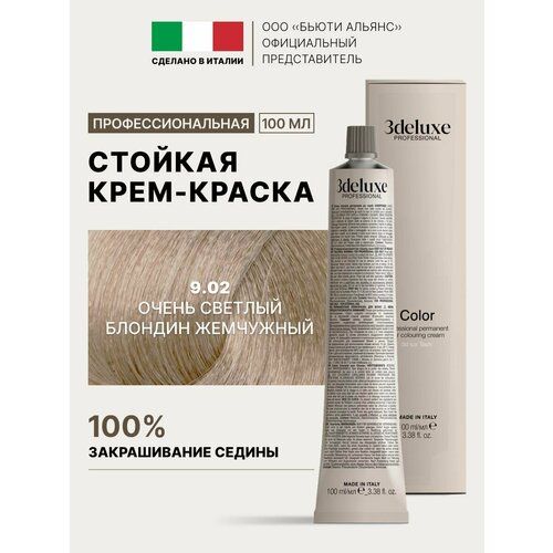 НАЙТИ ВЫГОДНЕЕ - 3Deluxe крем-краска для волос 3D Lux Tech, 9.02 очень светлый блондин жемчужный, 100 мл