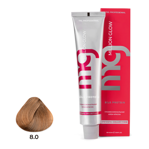 НАЙТИ ВЫГОДНЕЕ - TNL Professional Крем-краска для волос Million glow Silk protein, 8.0 светлый блонд интенсивный, 100 мл