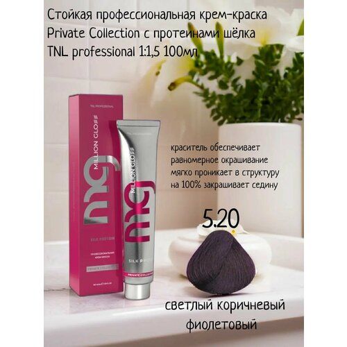 НАЙТИ ВЫГОДНЕЕ - TNL Professional Крем-краска для волос Million glow Silk protein, 5.20 Светлый коричневый фиолетовый, 100 мл