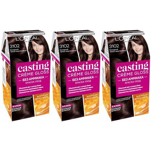 НАЙТИ ВЫГОДНЕЕ - L'Oreal Paris Краска-уход стойкая для волос Casting Creme Gloss без аммиака, 3102 Холодный темно-каштановый, 3 штуки /