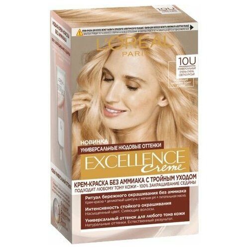 НАЙТИ ВЫГОДНЕЕ - L'Oreal Paris Крем-краска для волос Excellence Creme без аммиака, 10U универсальный очень-очень светло-русый /
