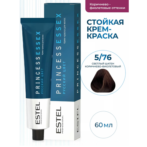 Крем-краска для волос ESTEL PRINCESS ESSEX 5/76 «светлый шатен коричнево-фиолетовый/горький шоколад» 60 мл предназначена для стойкого окрашивания и интенсивного тонирования.