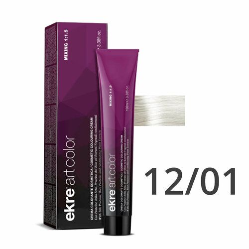 НАЙТИ ВЫГОДНЕЕ - Краска для волос профессиональная осветляющая Ekre Artcolor 12.01 Суперосветляющий блонд Пепельный 100 мл